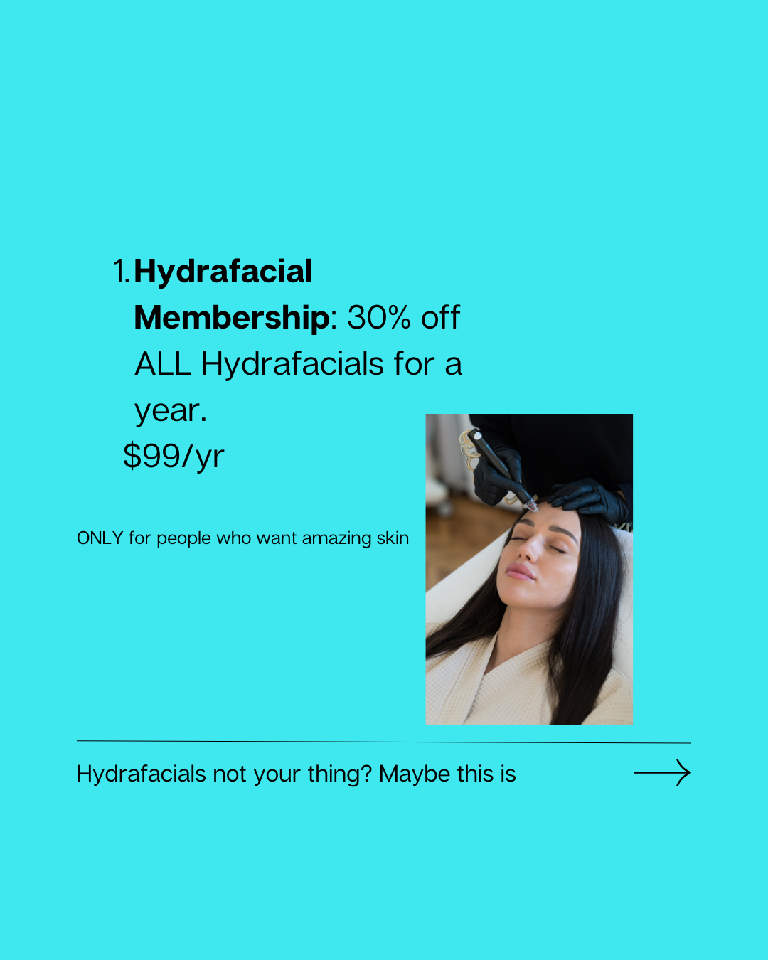- Explore our Hydrafacials – available in Signature, Deluxe, and Platinum – using the Hydrafacial MD Elite