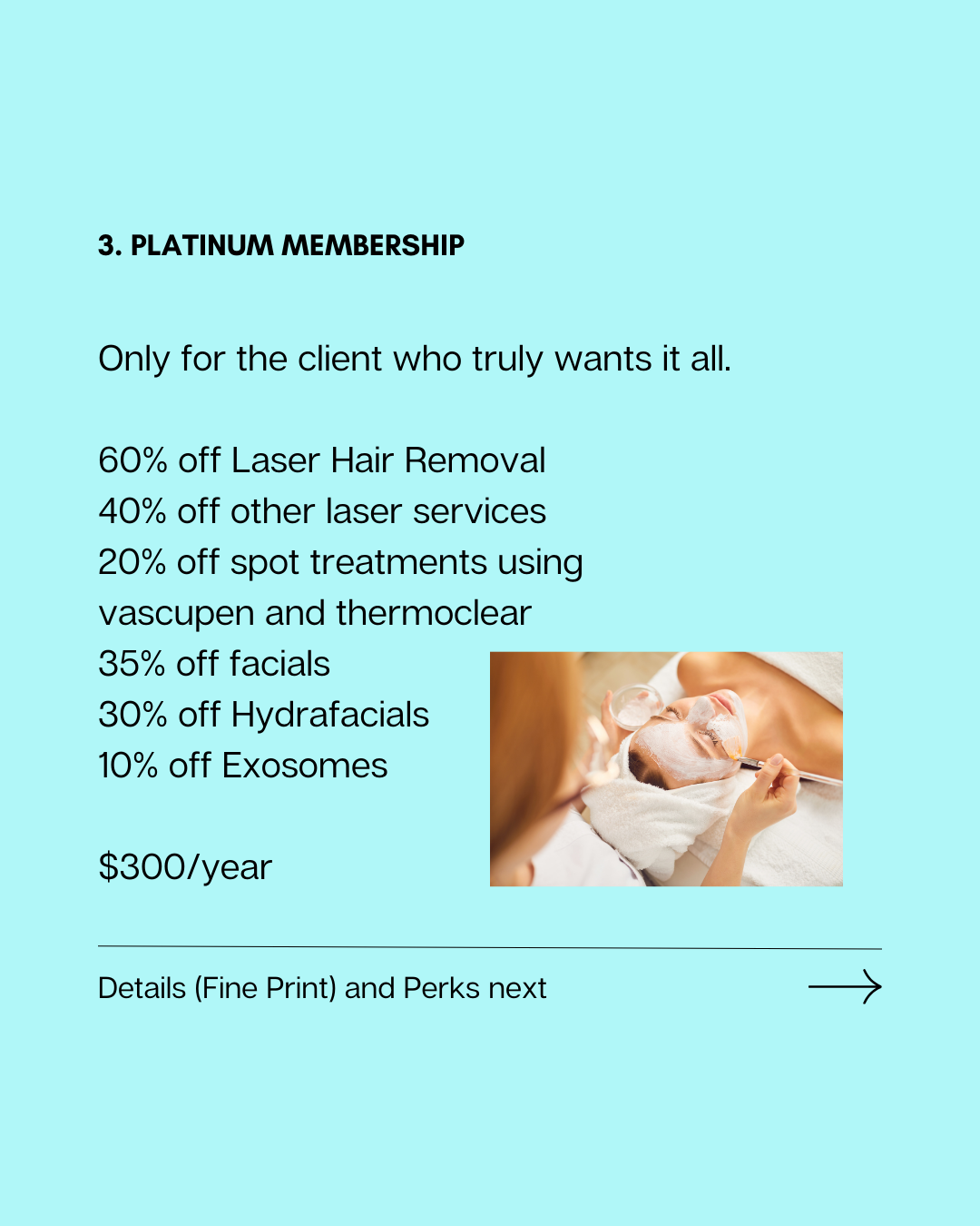 - Facials